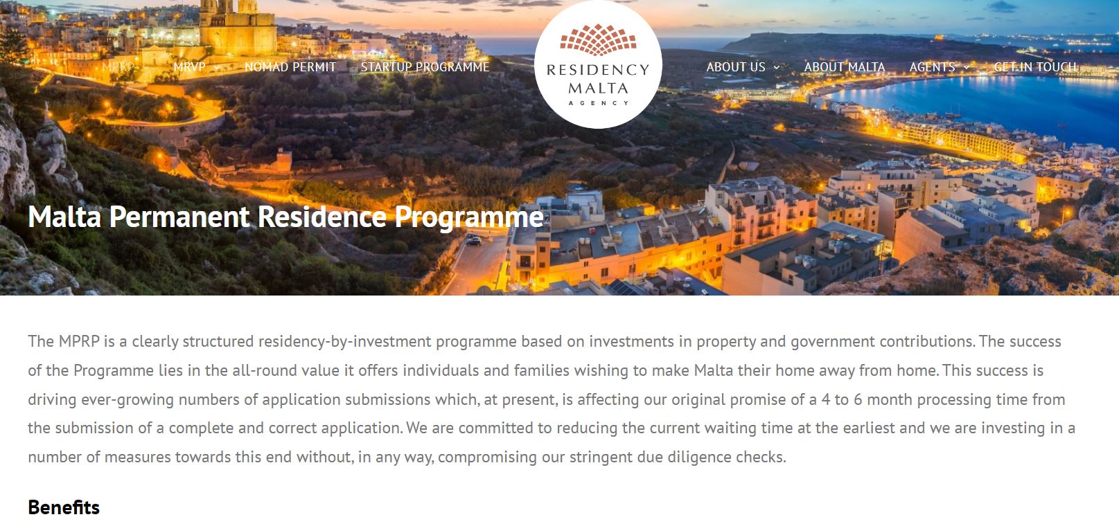 Website chính thức của chương trình đầu tư lấy thường trú nhân Malta cho cả gia đình 03 thế hệ tại được công bố tại Cơ Quan Cư Trú Malta